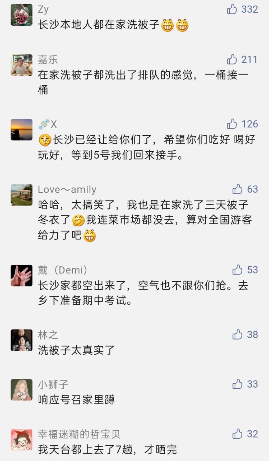 还有很多长沙人说,看到长沙城里来了这么多人,都不敢下楼,生怕出去了找不到回来的路,天天在家晒被子。