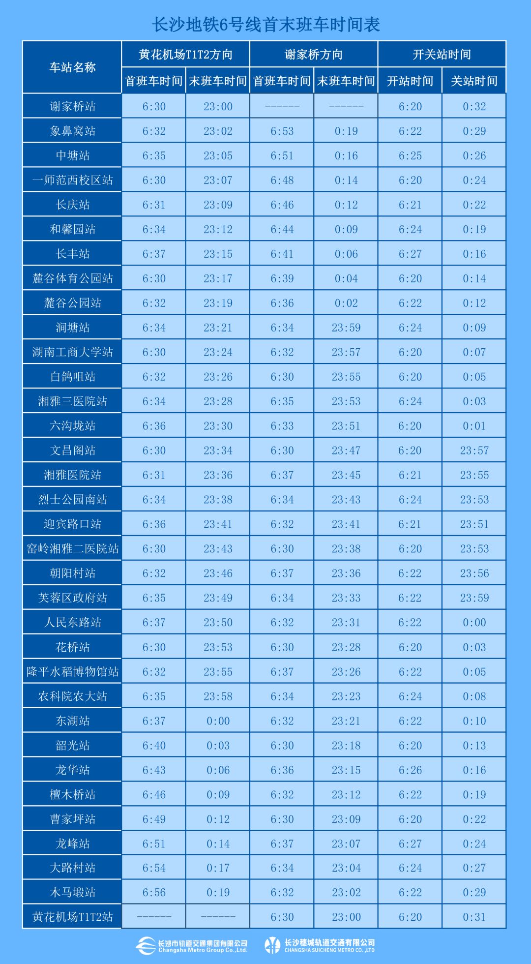 首班车6:30,末班车23:00。