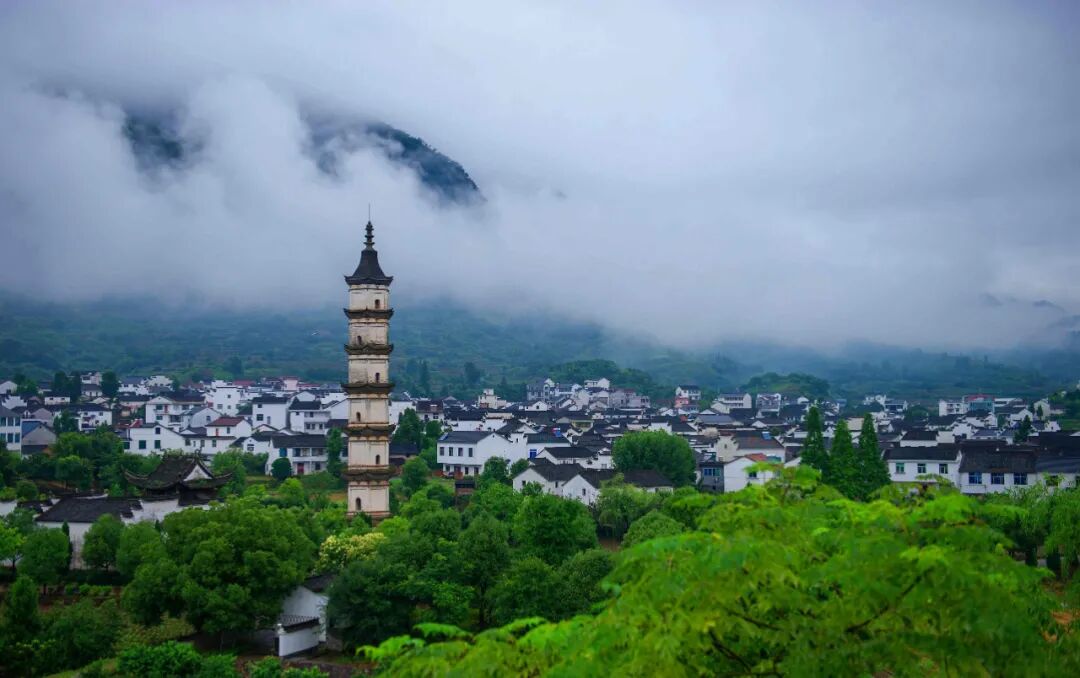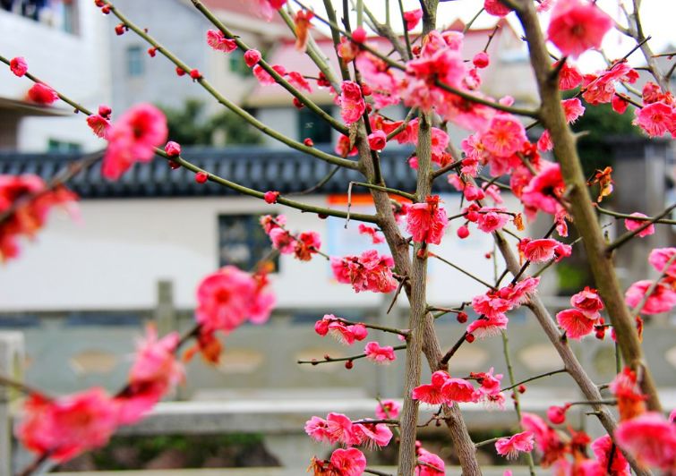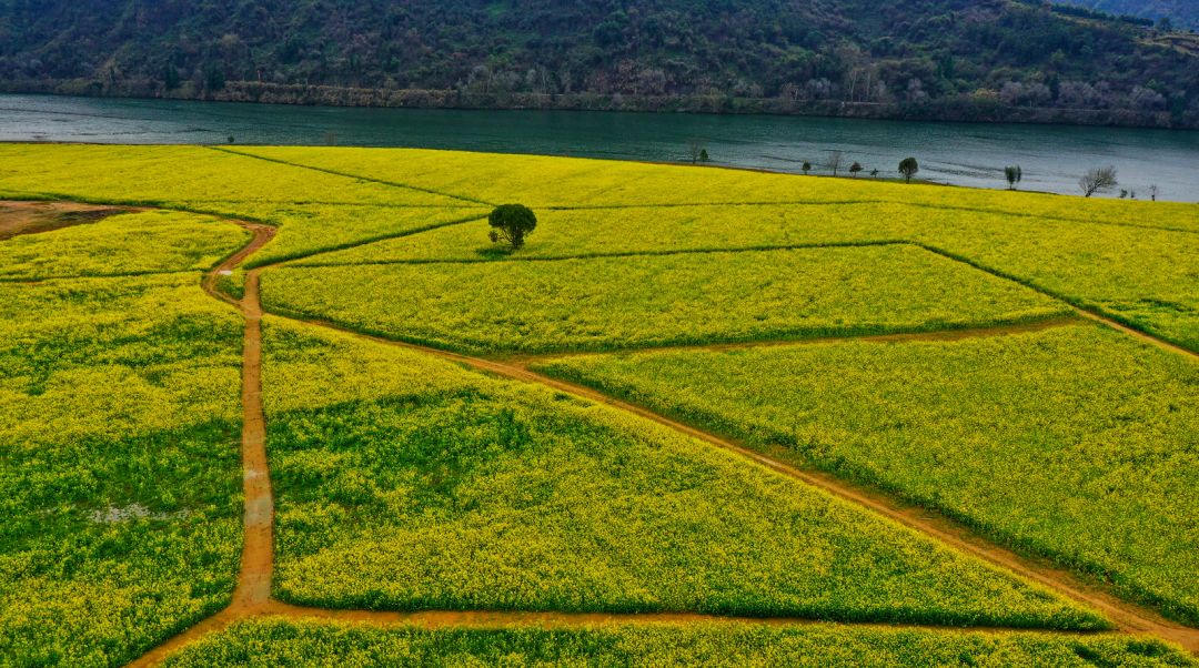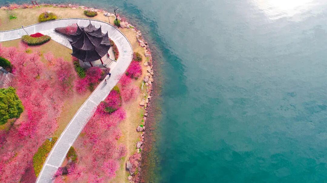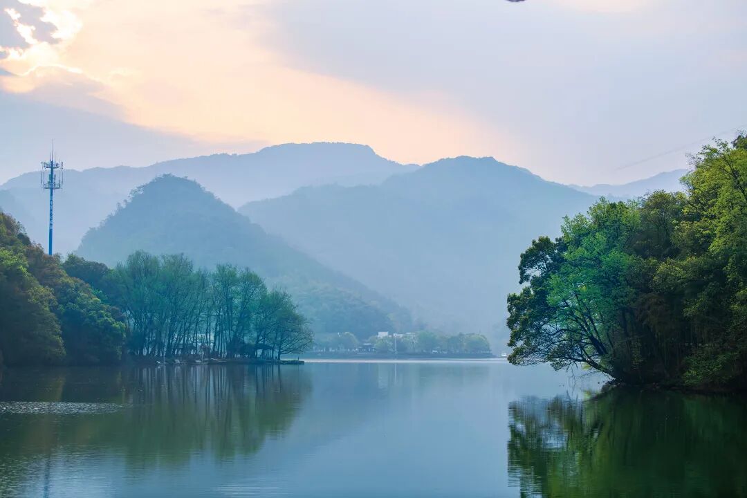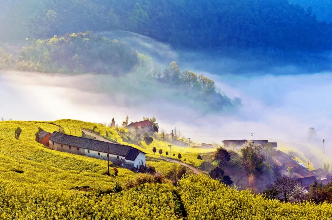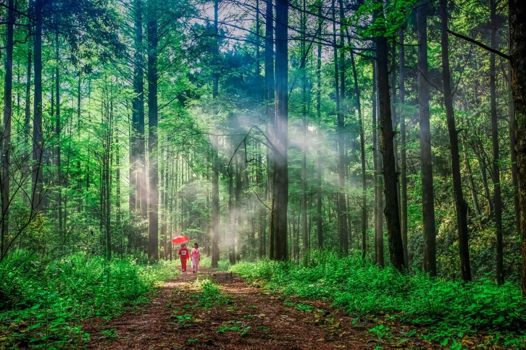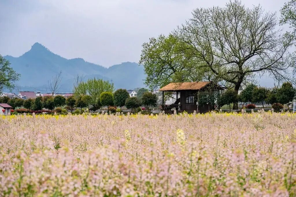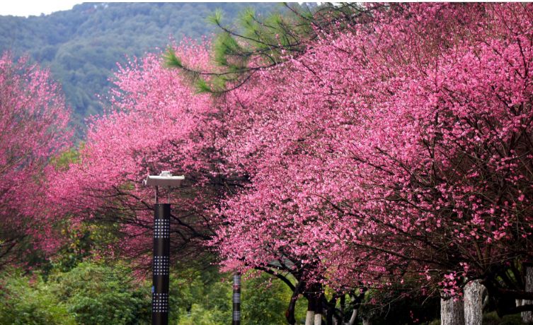 成片的杜鹃花海映衬在青翠欲滴树木间