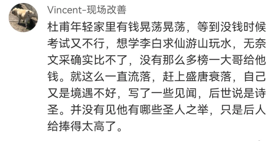 最近有些评论特别有意思,有一些声音说:杜甫不行。