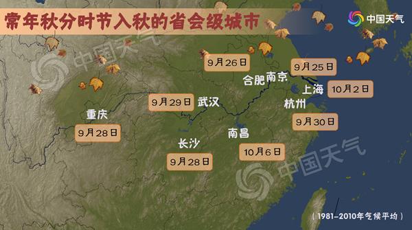目前,江淮、江南一带仍处于气象意义上的夏季,常年入秋日期在9月下旬至10上旬。