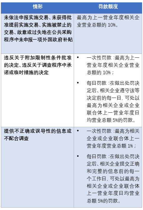 为保证《新规草案》下的制度和决定得以实施,《新规草案》也赋予了欧委会对不遵守《新规草案》规定的行为进行罚款的权利,总结如下[44]: