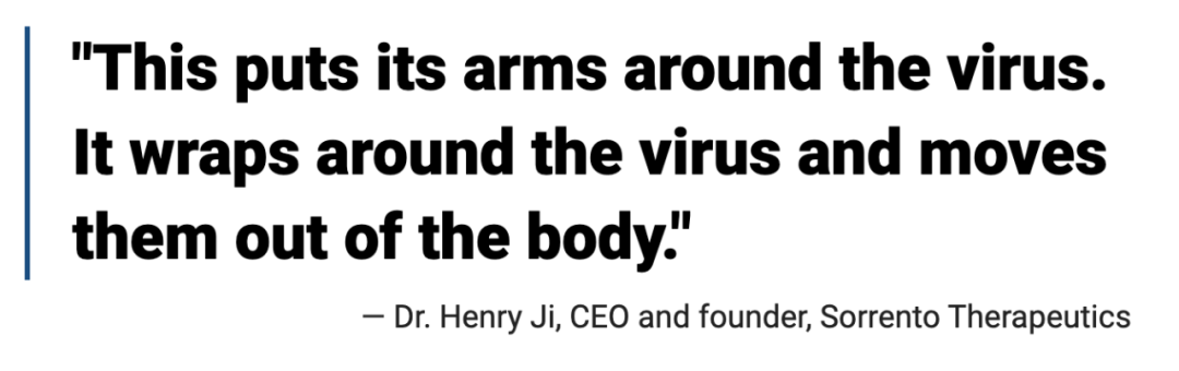 “制造疫苗的目的是推广一种中和抗体。所以,如果你已经有一个,你就不需要再通过疫苗来注射抗体了。”Sorrento公司的高级副总裁Mark Brunswick博士认为。