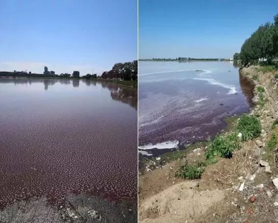 巨大的黑臭水体上大面积漂浮着白色泡沫和红色的固体废物,污水颜色呈暗红色,散发着刺鼻的臭味。督查组监测人员立马对该黑臭水体进行水样监测。