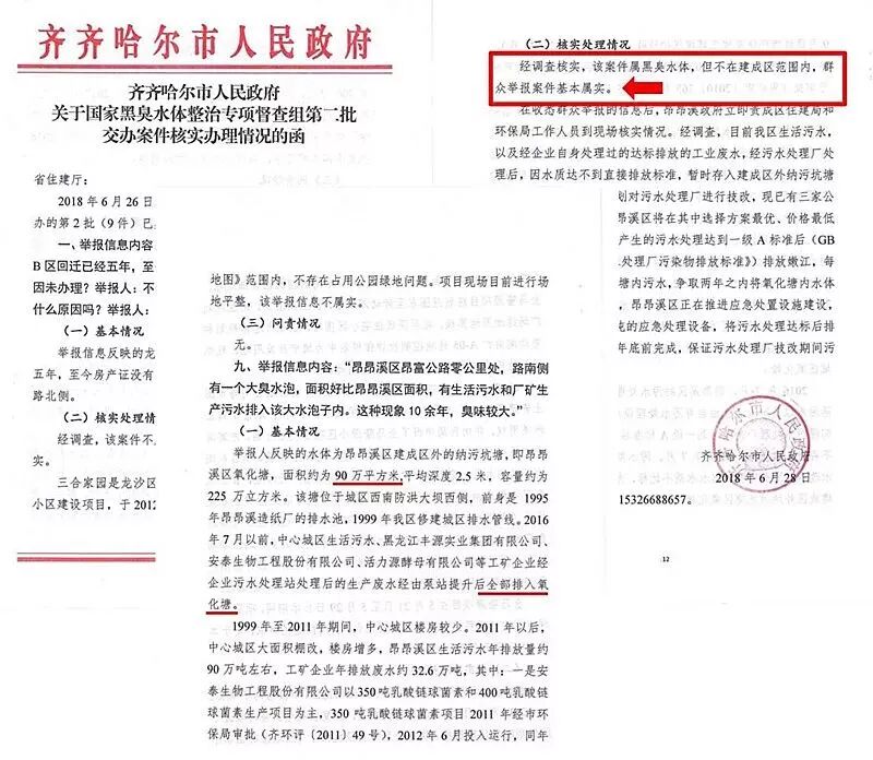 ▲ 6月28日,齐齐哈尔市人民政府反馈给黑臭水体整治环境保护专项行动第31督查组的情况说明,称群众举报案件基本属实,污水全部排入黑臭水体。