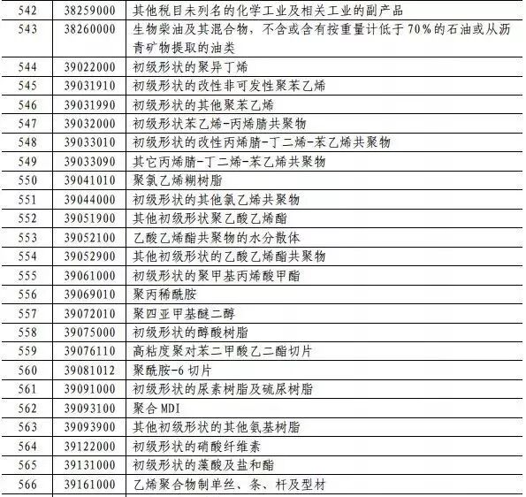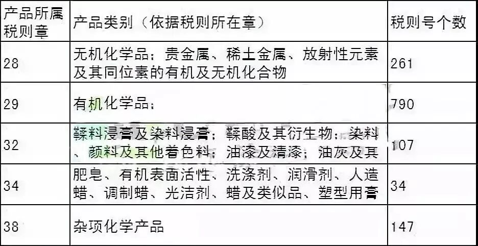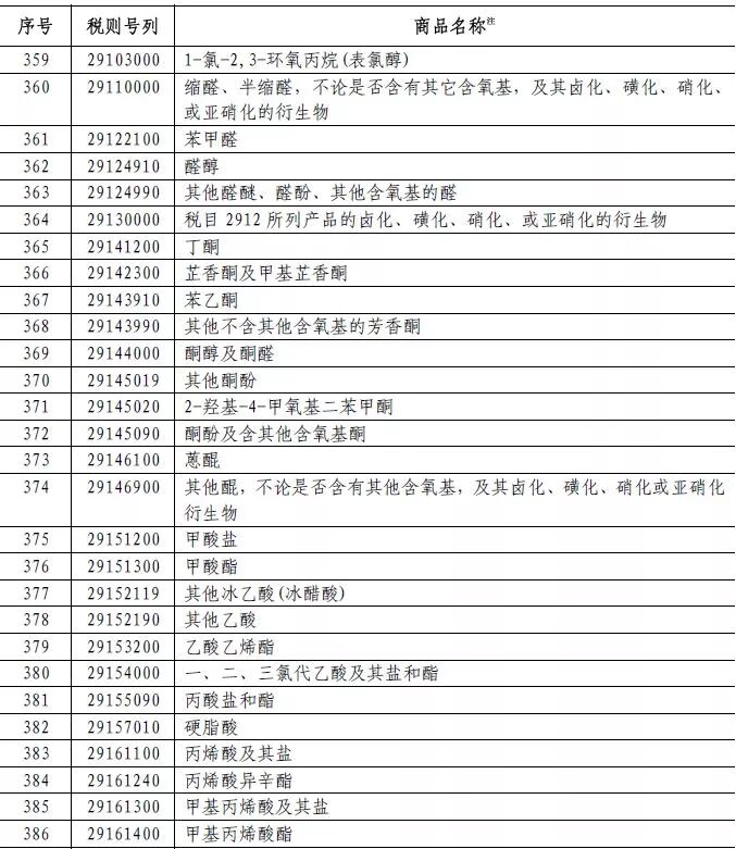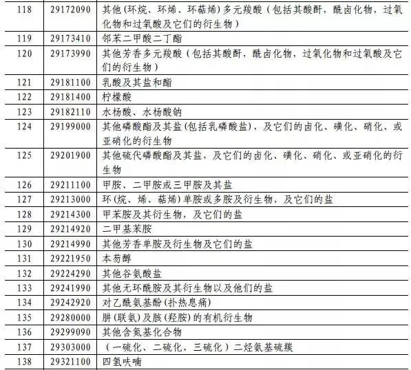 中国对美国征税清单里所包含的部分化学品征税情况如下: