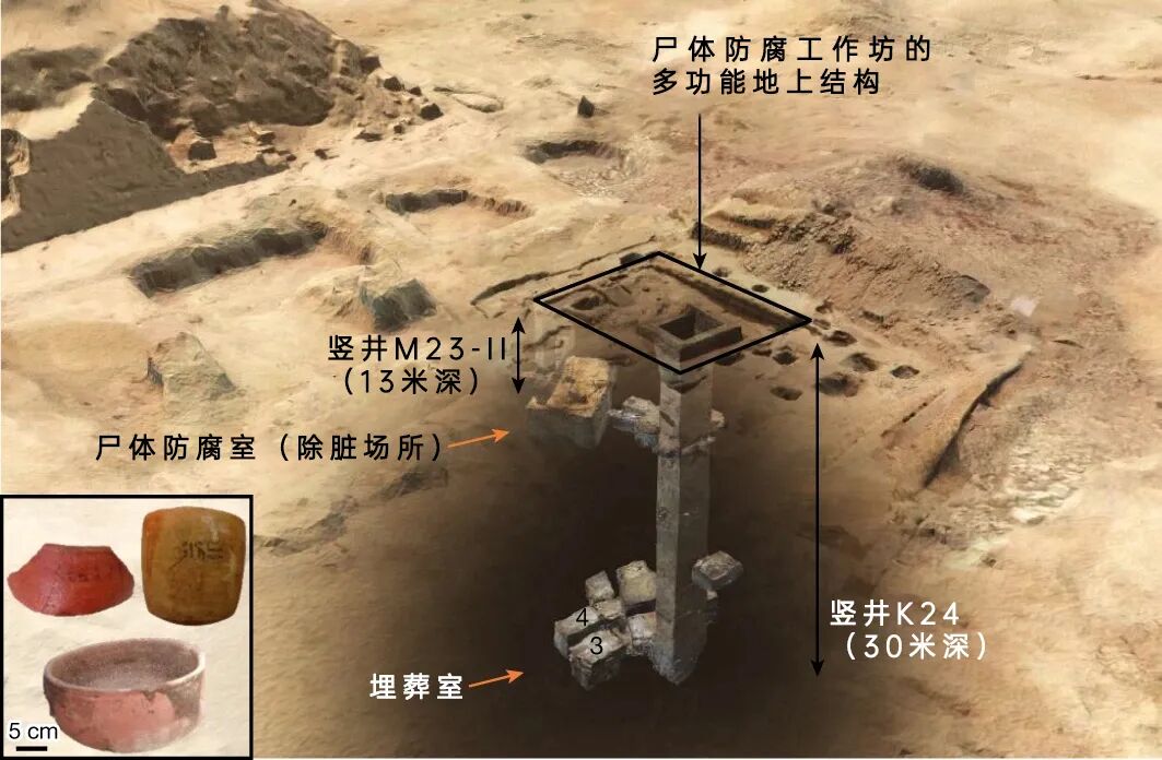 工作坊中保留下了大约2500年前人们使用的大量罐子。表明在公元前6世纪和7世纪,古老的防腐专家曾在这间工作坊里将逝者制成木乃伊。对埃及学家来说,能够找到这么古老的熟练工匠使用过的大量器皿,是相当幸运的事情。
