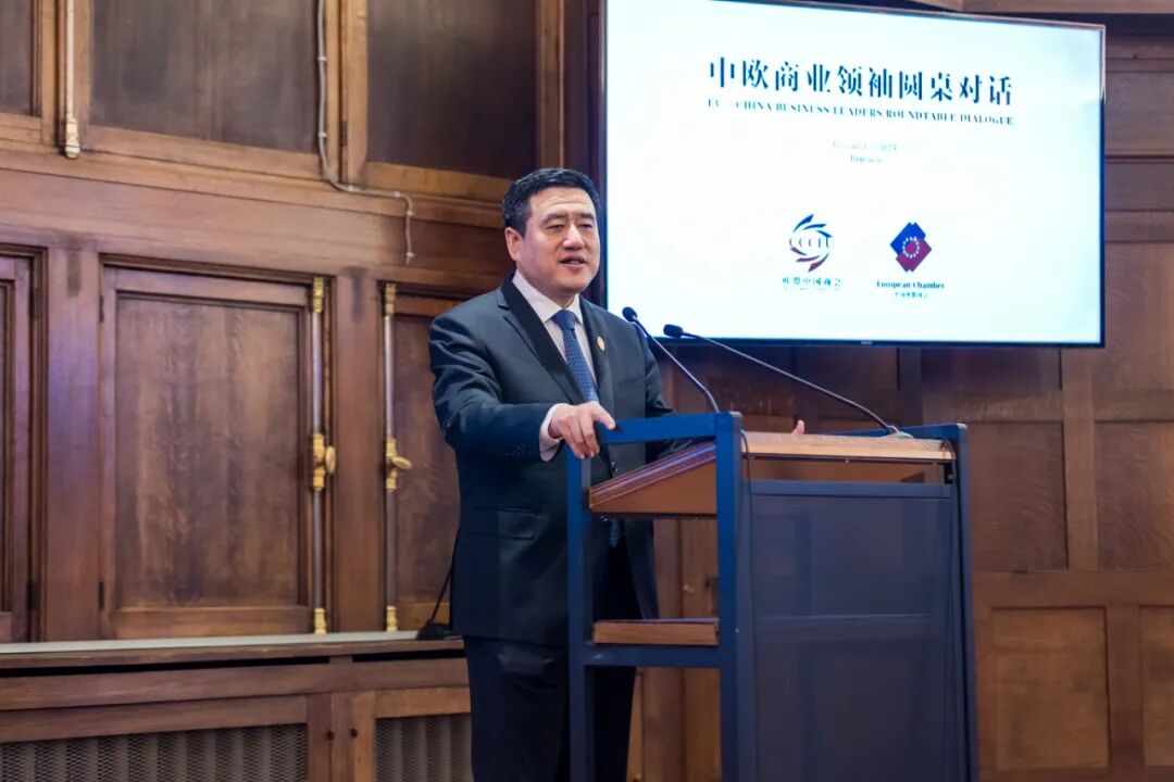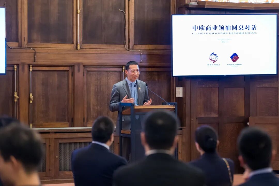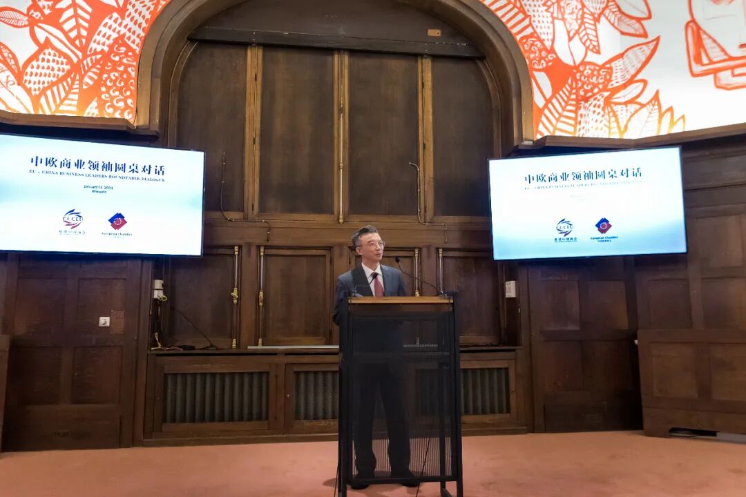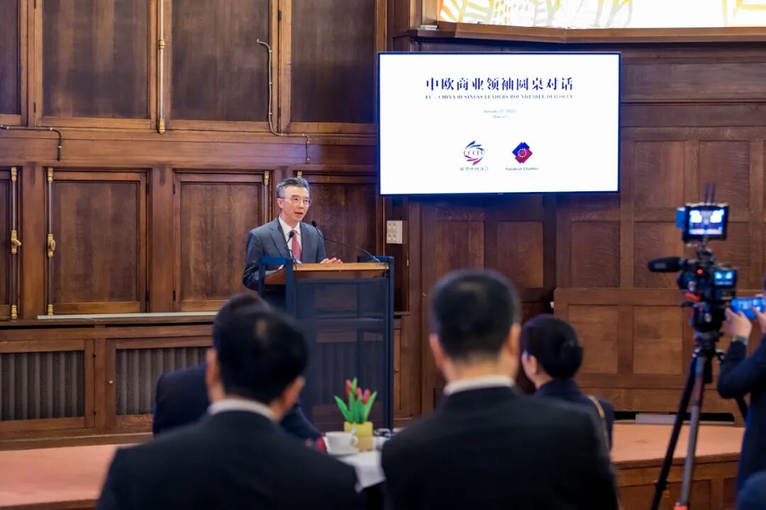 2023年1月13日,新年伊始,欧盟中国商会与中国欧盟商会在比利时布鲁塞尔共同举行高水平“中欧商业领袖圆桌对话会议”,中国驻欧盟使团经商处彭刚公使发表主旨演讲,欧盟中国商会会长徐海峰、中国欧盟商会主席伍德克先后致欢迎辞;活动由欧盟中国商会秘书长方东葵和中国欧盟商会秘书长亚当·邓尼特共同主持。