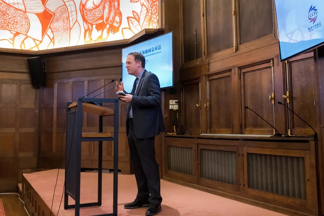彭刚公使向中欧企业家致以新春问候。他在主旨演讲中表示,经贸合作是中欧关系压舱石和重要支柱,双方合作含金量不断提升、广度继续扩大,在气候变化、绿色发展、数字转型、基础设施、互联互通等诸多领域持续深化。中欧企业助力中欧形成强大经济共生关系,促进双边合作取得丰硕成果。