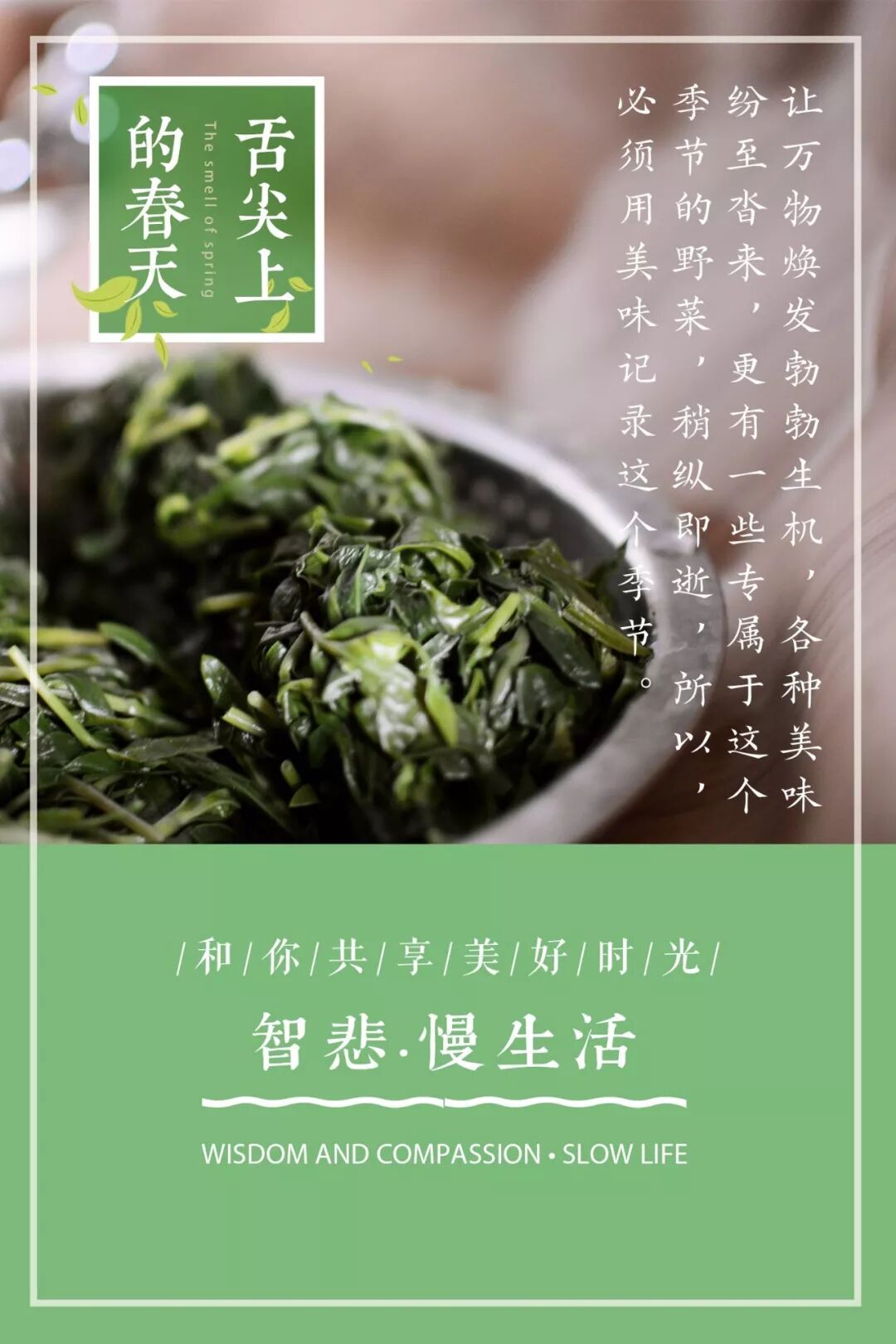 以上均为这个季节药食同源的野菜,但大家食用时也需根据个人体质择情选择。如果自己采摘,请一定仔细辨认,以免误食,并远离受污染的环境,摘回的野菜尽量多一些时间浸泡。如果可以一边踏青,一边摘野菜,然后回家品尝美味,这样的春天实在美好。