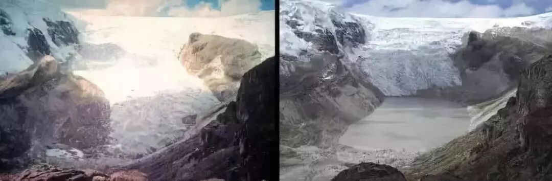 1909年7月和2004年7月,阿拉斯加州麦卡迪冰川的融化情况。