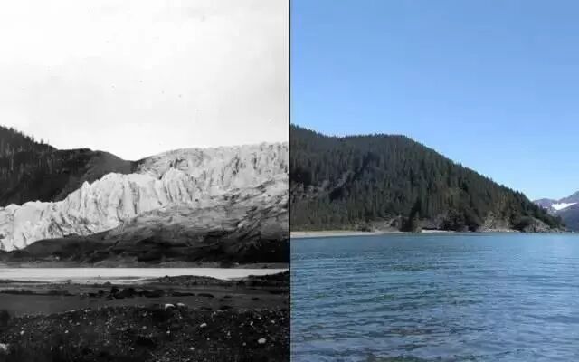 1941年8月和2004年8月,阿拉斯加州缪尔冰川融化的情景。