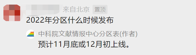2022年中科院分区表即将公布。据官方透露,今年的中科院分区表“预计11月底或12月初上线”。