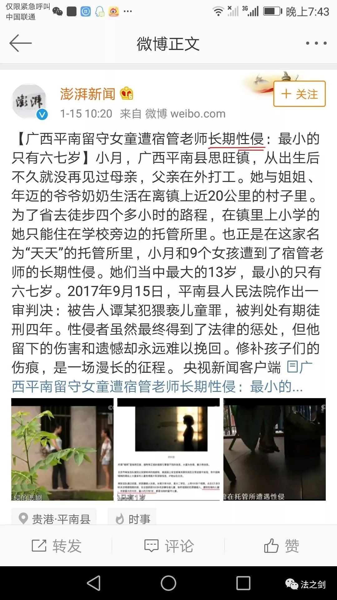 昨天,我看到澎湃新闻标题为《广西平南留守女童遭宿管老师长期性侵:最小的只有六七岁》的新闻: