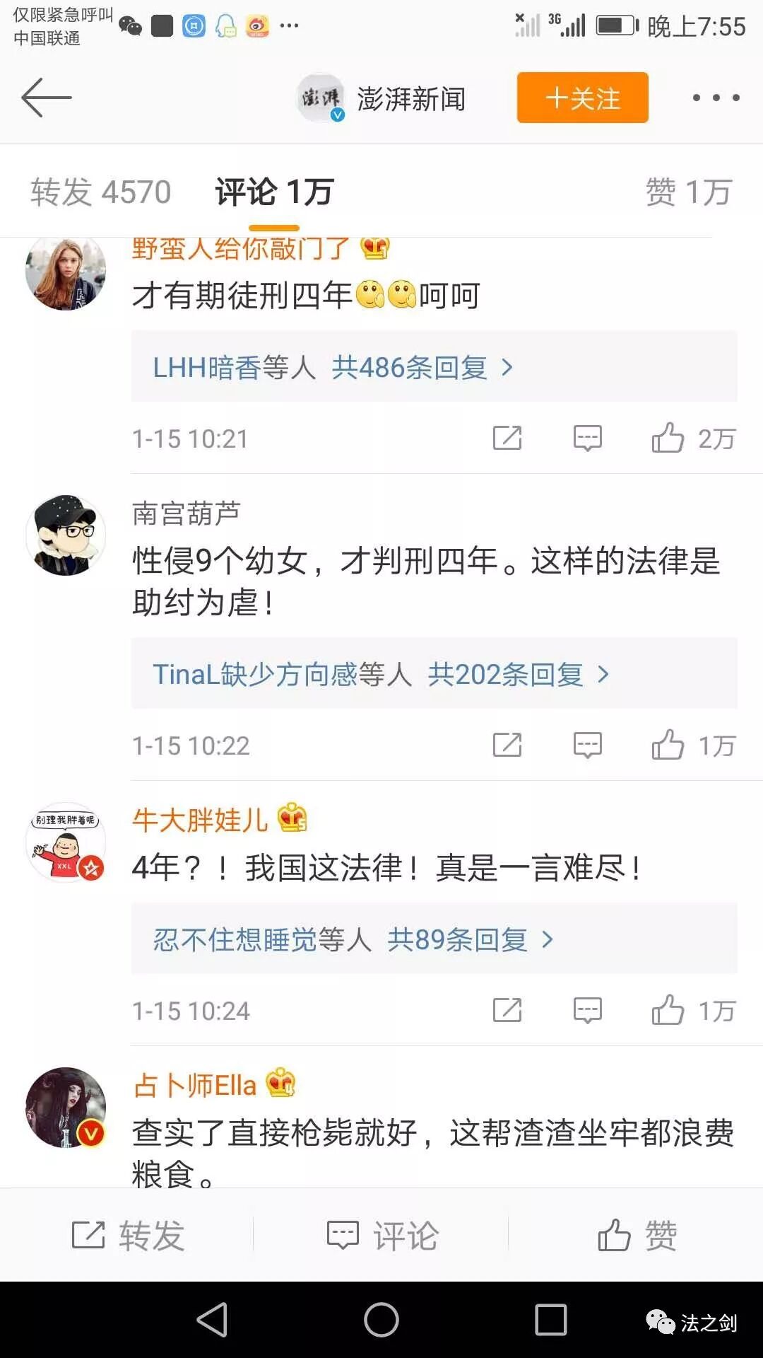 认真详细看这新闻,便知这其实是一起猥亵女童案,犯罪人最终被判处了四年徒刑。可网友普遍没这耐心细读的,纷纷开始谴责法律,谴责法官了:“4年?!我国这法律!真是一言难尽!”“性侵9名幼女,才判刑四年。这样的法律是助纣为虐!”“熔炉?真的希望国家加强强奸幼女的法律”……