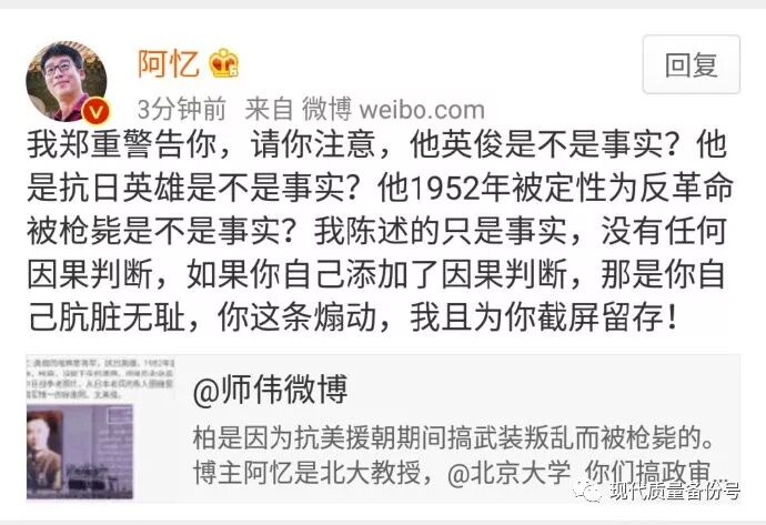 按照以往经验,遇到我这种较真的、事主应该删帖尿遁才对。不想阿忆教授硬气得很,居然气势汹汹地反咬了——