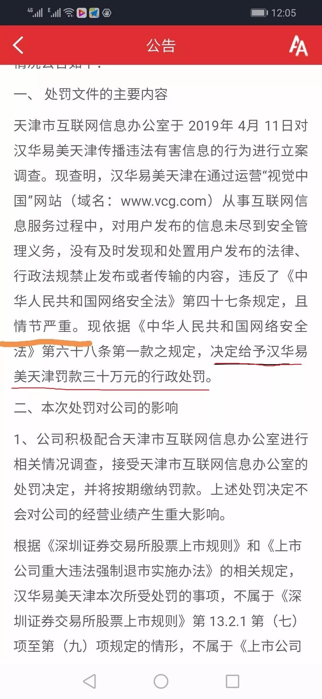 某种程度上说,天津网信办对视觉中国的处罚是靴子落地,区区30万元的处罚,将利坏变成了利好-----处罚是坏;哦,就30万元罚款啊,小意思,即刻又成利好。