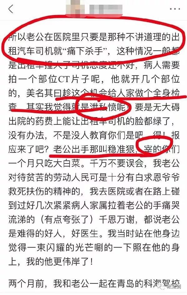 青岛的医生老婆就很好,人长的好,心也好,她把真实的老公展现在大家面前,让老公及时停职审查,悬崖勒马,避免犯更大的错,这是典型的贤妻良母,真正是家中一宝。这样的老婆娶10个都不嫌多。