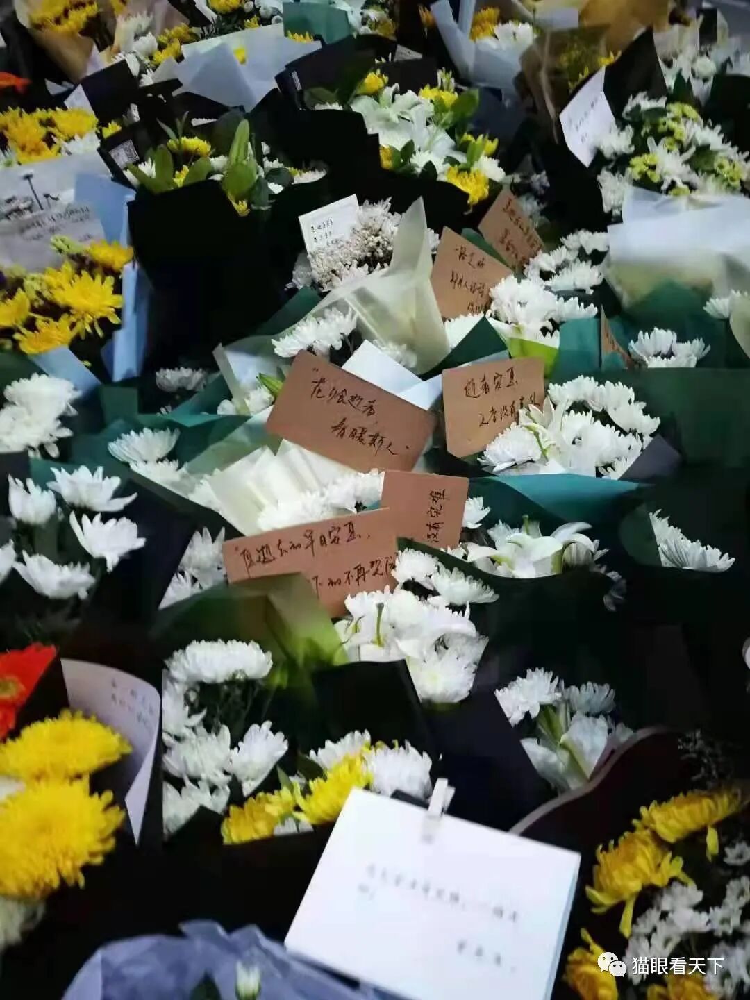 曼珠沙华maoer:有不少花应该是网上买的,委托店家写了字送到现场,至于谁买的,那就不好说了,本地人没必要如此网购吧,真心哀悼应该是亲自去现场。