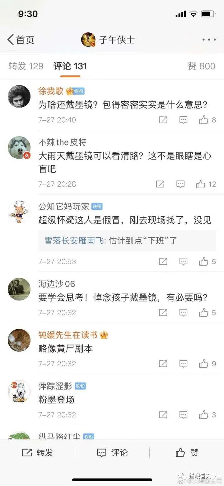 网友子午侠士对此特意发帖提出了自己的疑问:此次在洪灾中不幸遇难的人中,最年轻的女孩是20岁,就算这个妞妞是最年轻的,这个年龄平时需要她爸爸用自行车接送去地铁站吗?有人可能会说人家说的是小时候接送,那么,“父亲穿的雨衣是和女儿分开时的那件”是个什么梗?看看新浪保险是怎么说的:怕女儿认不出来自己,所以穿的还是那件和女儿分开时的雨衣。