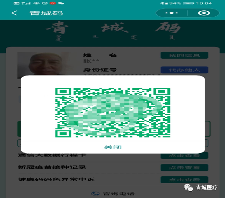 卡口张贴的“青城码”或从“青城码”微信小程序中直接调取二维码,核酸采集人员扫描“青城码”进行登记。