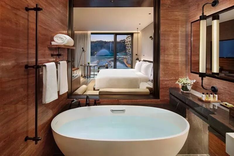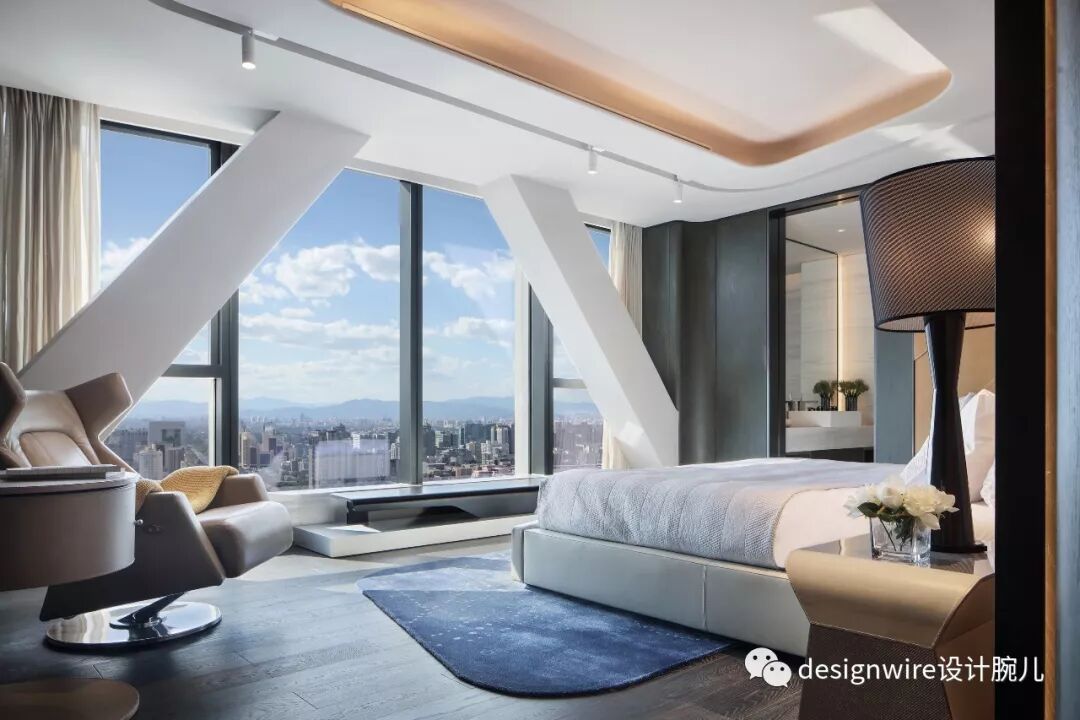 在卧室里,以开敞而透明的边界拥抱三里屯天际,目之所及,视线扫过现代都市楼宇;环宇之间,是青天朗朗,尊享三里屯凌云之境。