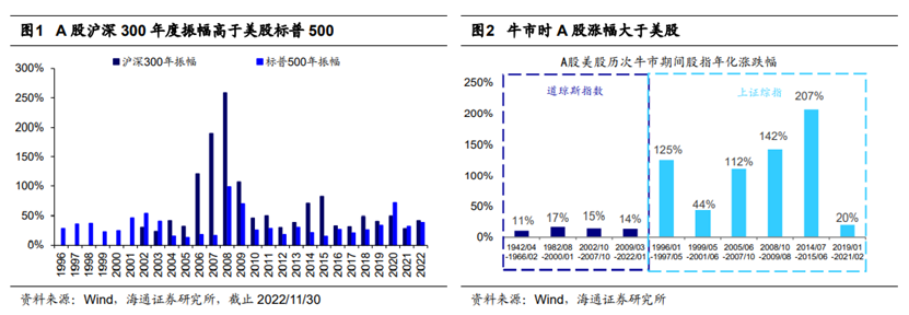 在今年召开的中国共产党第二十次全国代表大会上,会议报告提及“深化金融体制改革……健全资本市场功能,提高直接融资比重”,这对我国资本市场发展提出了进一步要求。近年来A股市场振幅略有下降,但是对比美股,波动性仍较大。未来健全资本市场功能,A股更加平稳运行,依旧任重道远,本文将从中美两国对比出发,看看A股还可以从哪些方面做出改进。