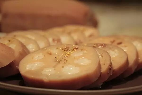 具体做法是:将莲藕洗净后擦干,从一端切下2厘米长左右的一节作为帽盖;糯米洗净后塞入莲藕孔内,塞满后将莲藕帽盖盖上,以牙签扎牢,上蒸笼蒸透(约需2小时);莲藕取出,泡水刮皮,去掉帽盖,分切为0.5厘米厚片状后,放入大碗中,加桂花,再以玻璃纸封住碗口,上蒸笼以小火蒸上一个半小时后取出,倒扣入盘中,即可。