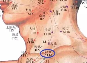 出自《素问·气府论》,属足阳明胃经。缺盆穴位于人体的锁骨上窝中央,距前正中线4寸。