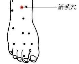 出《灵枢·本输》。属足阳明胃经。解溪穴位于小腿与足背交界处的横纹中央凹陷处。(或在足背与小腿交界处的横纹中央凹陷处,当足拇长伸肌腱与趾长伸肌腱之间。)