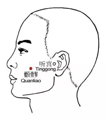 出《针灸甲乙经》。属手太阳小肠经。颧髎穴是手太阳小肠经上的常用腧穴之一,出自于《针灸甲乙经》,《千金要方》作权髎,别名兑骨。位于目外眦直下,颧骨凹陷处。现代常用于治疗三叉神经痛等病证,直刺0.3~0.5寸,斜刺或平刺0.5~1寸。
