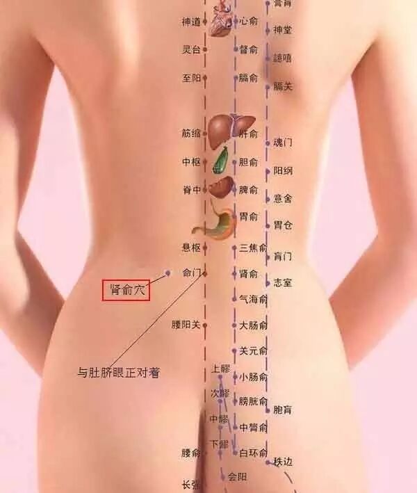 取定穴位时,通常采用俯卧姿势,肾俞穴位于人体的腰部,当第二腰椎棘突下,左右二指宽处。