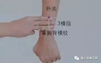 4.外关穴,腕背横纹上2寸,尺骨与桡骨之间,针法为泻法,同时配合颈部活动,一次疼痛减轻,二次即愈。
