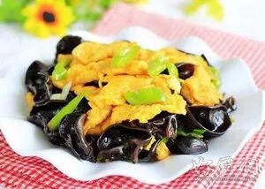◎香椿木耳炒鸡蛋 【原料】香椿芽150克、鸡蛋2个,黑木耳(干)5克,盐、味精、料酒和食用油等适量。 【做法】将香椿芽洗净后在开水里汆烫,在凉水里过凉,切碎;黑木耳泡发,切成小片;鸡蛋打入碗中,倒入料酒,少量清水打散成蛋液。热锅倒油,热至五成时,先放入沥干的木耳煸炒,再倒入蛋液翻炒,待凝固后,放入香椿芽翻炒,调入盐、味精。出锅前,淋点香油即可。 【功效】香椿为春令时菜,常食其嫩叶,作凉拌豆腐、炒鸡蛋等食用,入馔甚香。中医认为其具有消风、解毒、健胃理气之功,可用于治疗风寒外感、脘腹胀满等病。现代研究认为,鲜椿芽药用价值十分可观,具有提高机体免疫力,美容之功效,是保健养生的良好食品,具有一定的抗菌消炎的作用,对于春季病毒细菌感染,有一定的辅助治疗作用。黑木耳含丰富的木耳多糖,木耳多糖对机体免疫功能有明显促进作用,可促进血清蛋白质的生物合成,增强机体抗病能力,对机体损伤有保护作用。 【适宜人群】一般人群均可食用。机体免疫力、抵抗力低下、易感染者尤为适宜。因鲜香椿中硝酸盐含量较高,在制作食用前应用沸水焯一下后再食用。 |