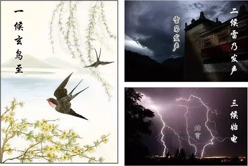 中国古代将春分分为三候:“一候元鸟至;二候雷乃发声;三候始电。”意思是说,春分日后,燕子便从南方飞来了,下雨时天空便要打雷并发出闪电。