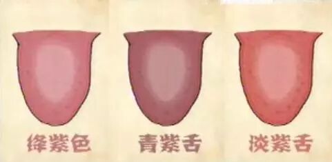 紫舌:是红中带青,色深而暗,乃上腔静脉或门静脉瘀血,静脉血流凝阻,回流不畅,为缺氧之象,每导致静脉血未作氧化,又回流所致。血色素成分增高,温热病见之则属热毒攻心之实证,如慢性病之心血管疾患,或肝病晚期,舌紫则属虚证。但实证之紫兼红而色深;虚证之色常暗紫而不兼红。