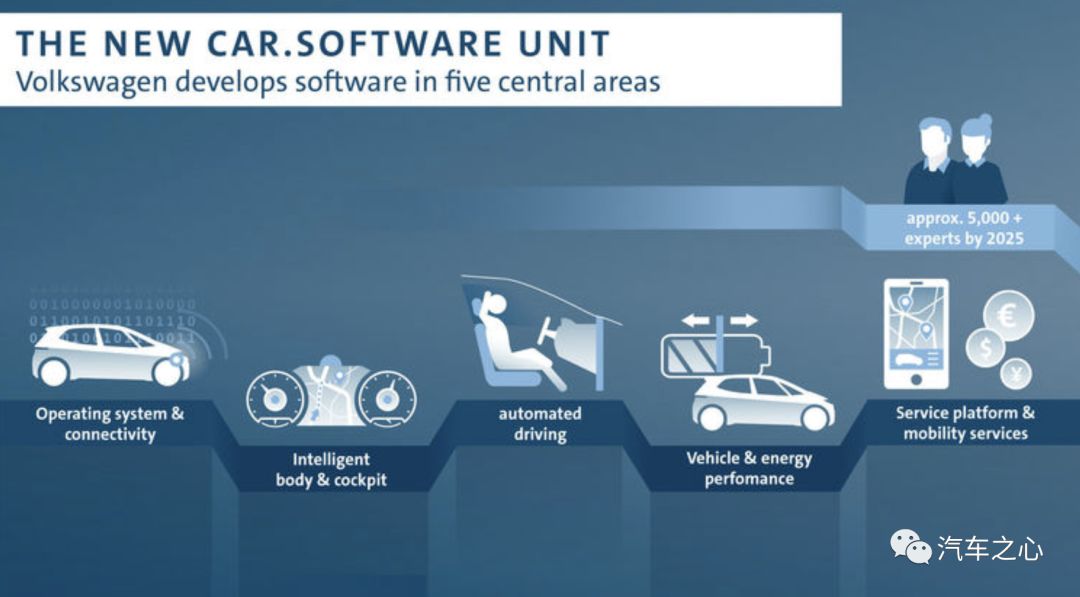 大众集团已经成立了创新性汽车软件开发部门「Car.Software」,并且在全球范围内网罗数字化技术人才,其使命是建立一套与原有硬件平台并行的软件平台架构。