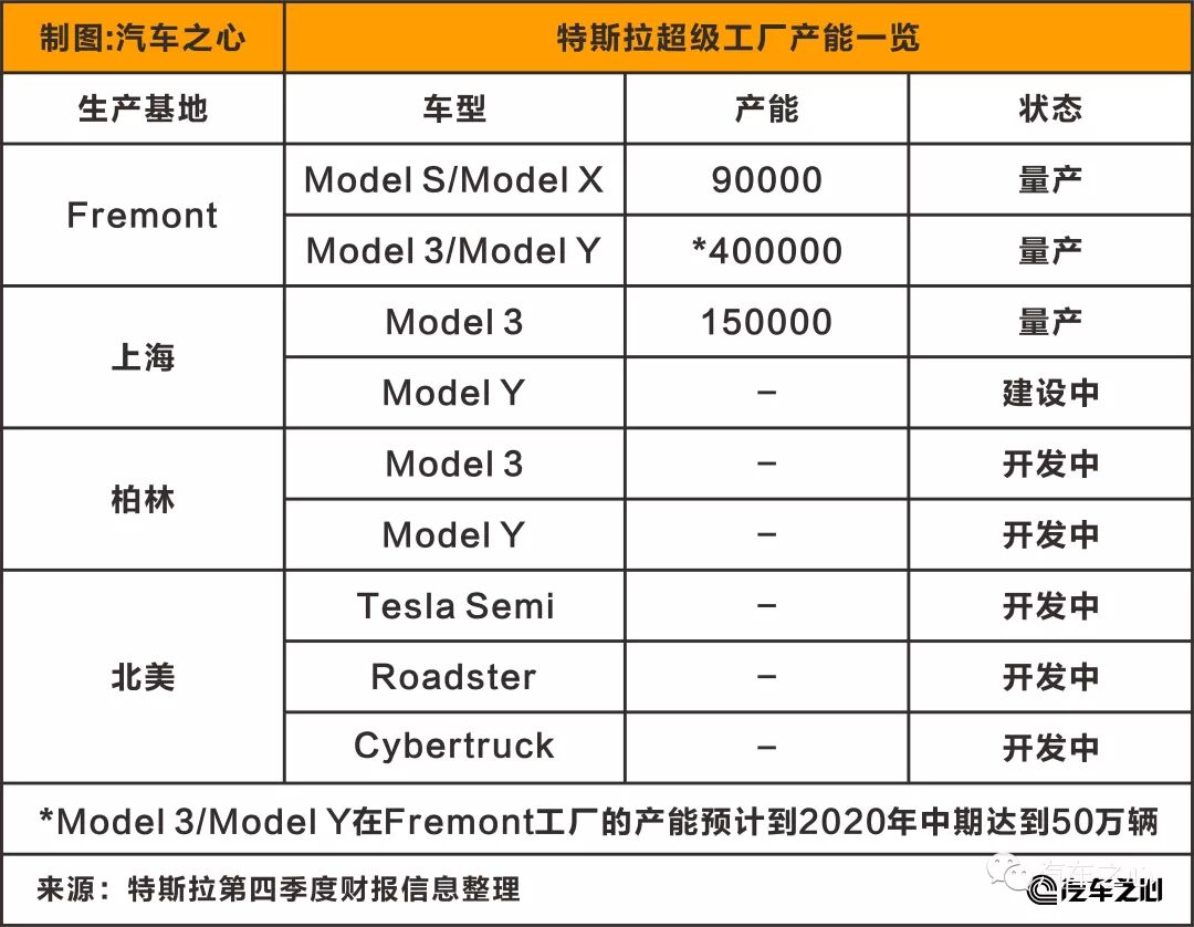 美国弗里蒙特工厂的年产能达到了 40 万辆,加上在上海超级工厂(目前具备周产 3000 辆的能力)接近 15 万辆的年产能,特斯拉 2020 年产能至少可以达到 55 万辆,应付 50 万辆年销量的目标绰绰有余。