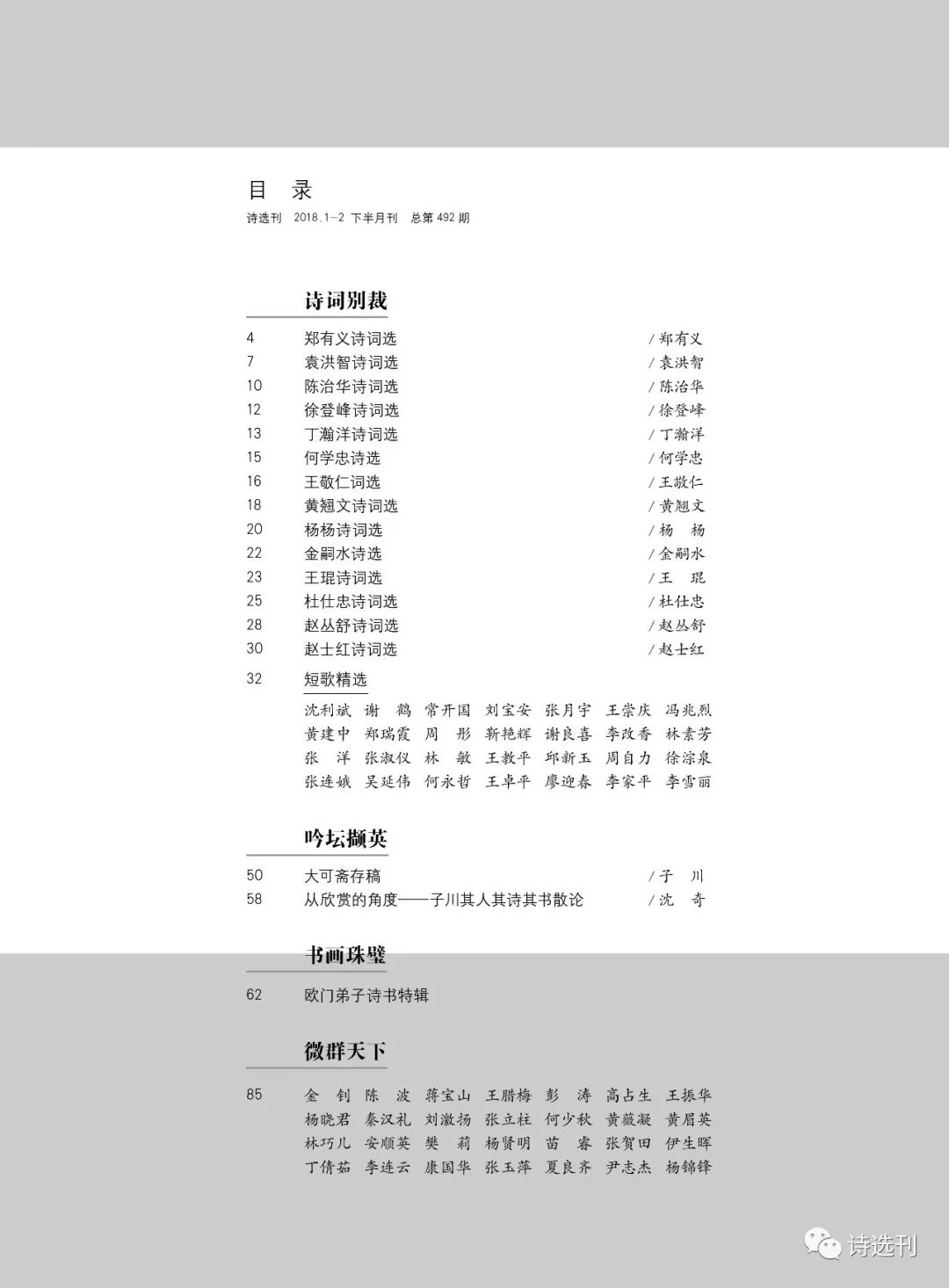 《诗选刊》2018年1-2期合刊下半月刊“法律人诗社专栏”,共十位诗友佳作刊发。分别是——