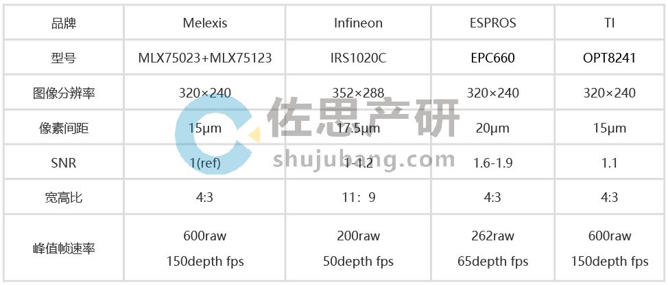 目前达到车规级的ToF图像传感器主要有Melexis的MLX75023和英飞凌的IRS1125a。德州仪器、ESPROS在2020年也有车规级产品问世。