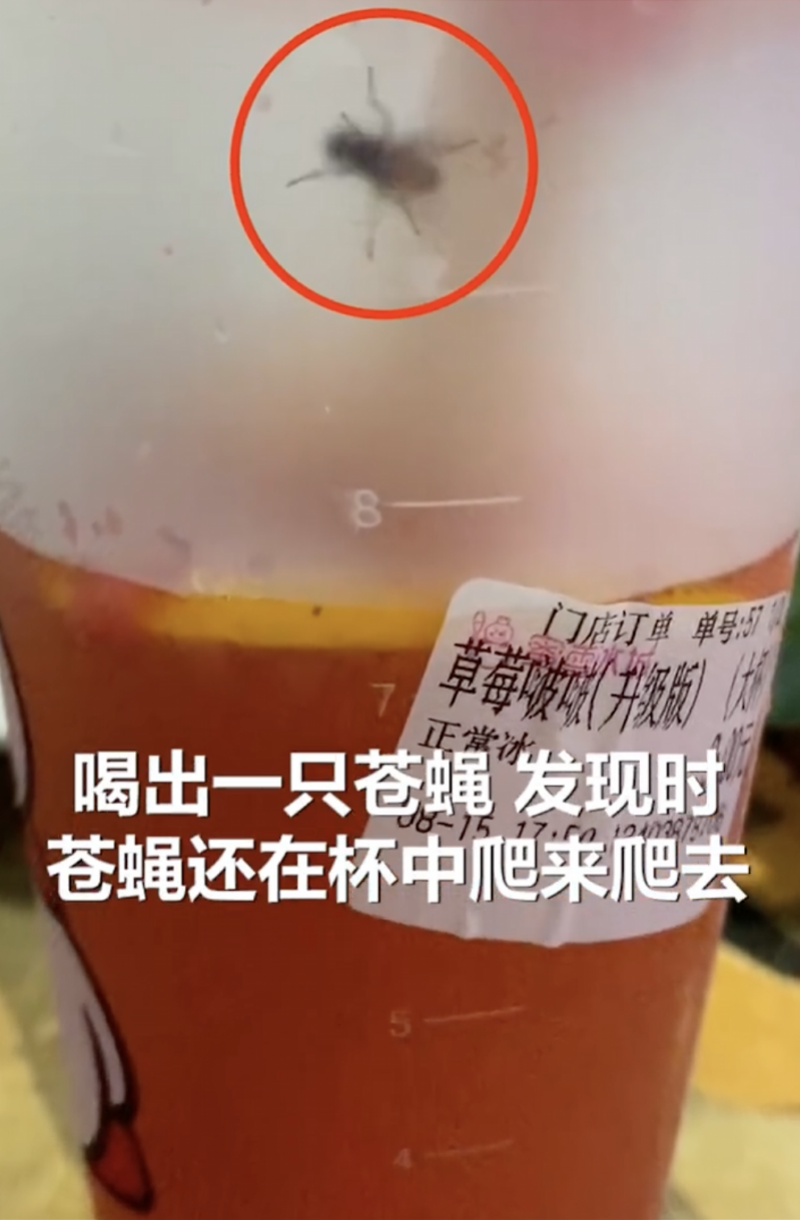 对此,涉事门店负责人曾于18日对外回应称,密封情况下一般产生不了活苍蝇,“假如是封口封进去的话,冷饮里面没有空气,苍蝇怎么可能会存活呢?”该负责人认为,苍蝇是开封后从吸管口处进入。