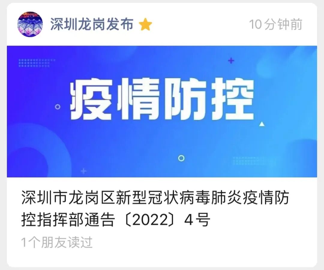 为应对当前疫情防控形势,严控疫情传播风险,尽快实现社会面动态清零,更好保障居民群众健康安全,经综合研判,决定即日起在龙岗区全域(除布吉街道外)实行如下管控措施: