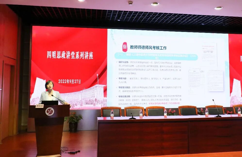 为了大力加强教师职业道德建设,使广大教师树立良好的师德师风,为医院建设和发展提供强大的精神动力。医院认真贯彻落实大学文件要求,组织做好2022年教师节庆祝工作,开展师德师风建设月活动。将2021年开设的“四明思政讲堂”作为重要的活动组成部分,宣讲思政理论知识,弘扬先进典型,讲好师德医德故事,展示师德医德典型风采。2022年9月27日下午,医院党委副书记、纪委书记郝微微作题为《树师德 扬师风——上海中医药大学附属曙光医院师德师风培训》的专题讲座,本次讲座也是作为党委中心组(扩大)学习内容之一。医院党政领导班子、党委委员、纪委委员、各临床及职能部门负责人、各教研室主任、护士长等参加学习会。会议由医院党委副书记、院长房敏主持。