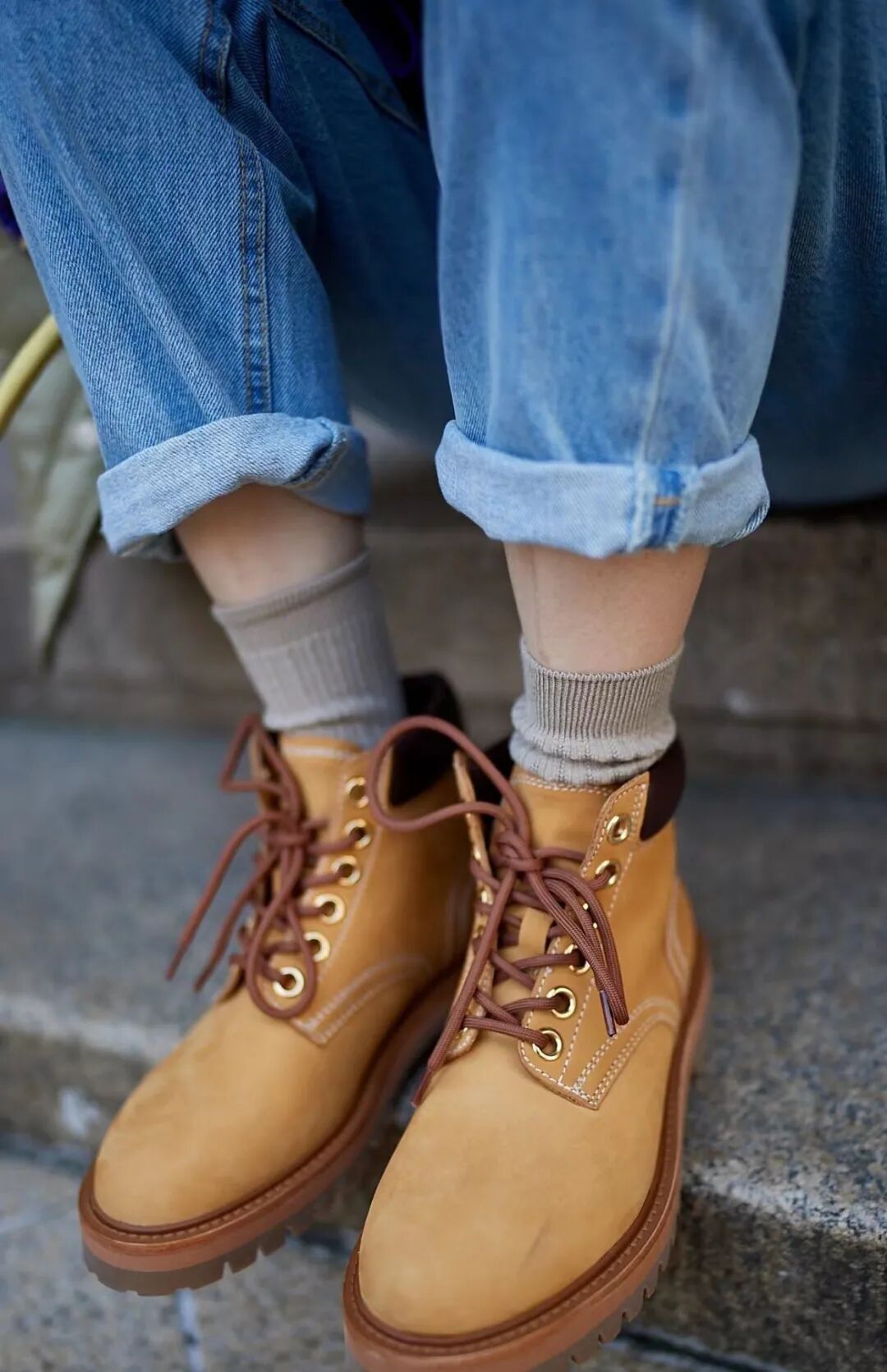 和紧口靴相比,这种靴口微微打开的工装靴,很能修饰腿型,让小腿看上去更细。👇🏻