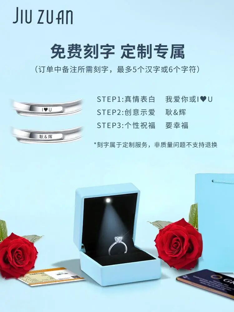 7.所有戒指款首饰,都免费提供刻字服务,定制周期约5天内发货。其他款式不提供此服务。
