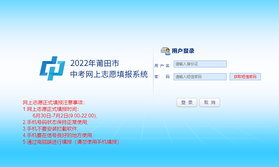 ●输入考生用户名和密码,即可进入志愿填报系统。
