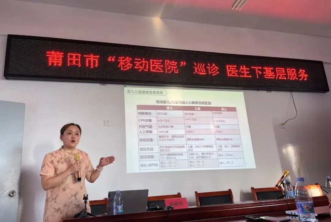 7月8日下午,以“普及小儿急救知识,守护儿童健康成长”为主题的健康知识宣讲活动在秀屿区平海镇卫生院成功举行。本次活动由莆田学院附属医院、市儿童医院和秀屿区卫健局联合举办,秀屿区平海镇卫生院承办。