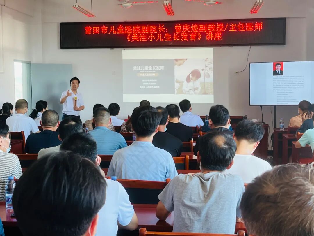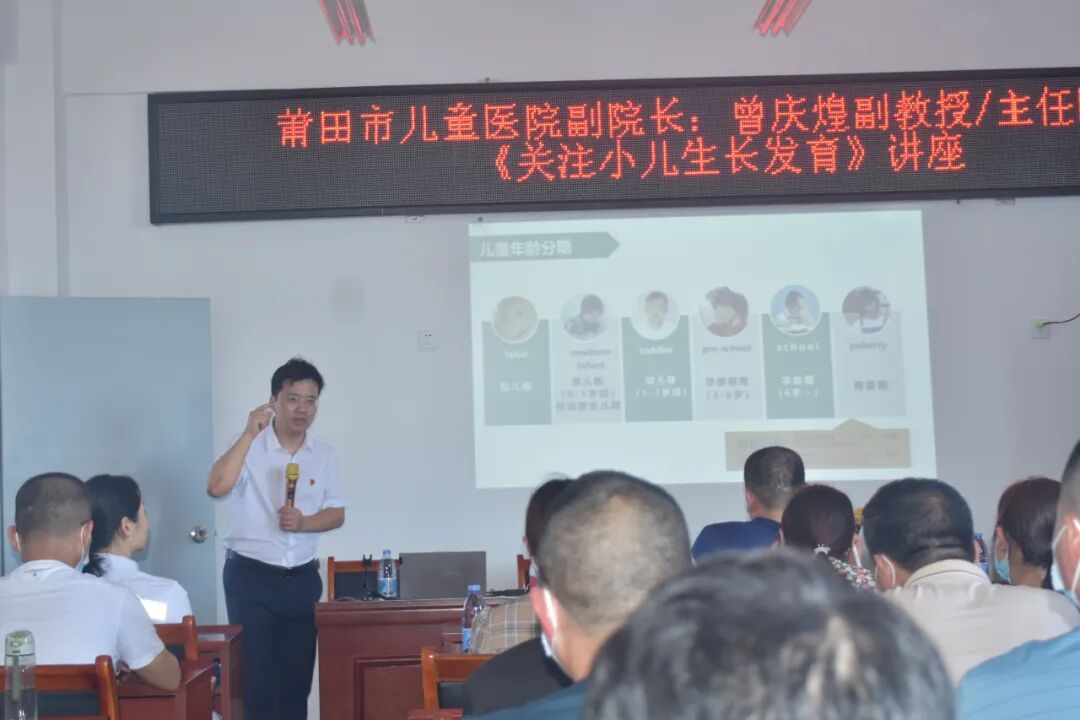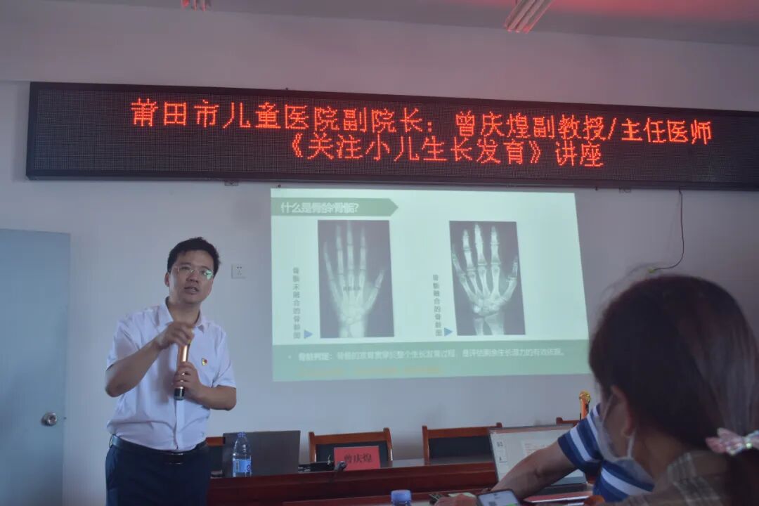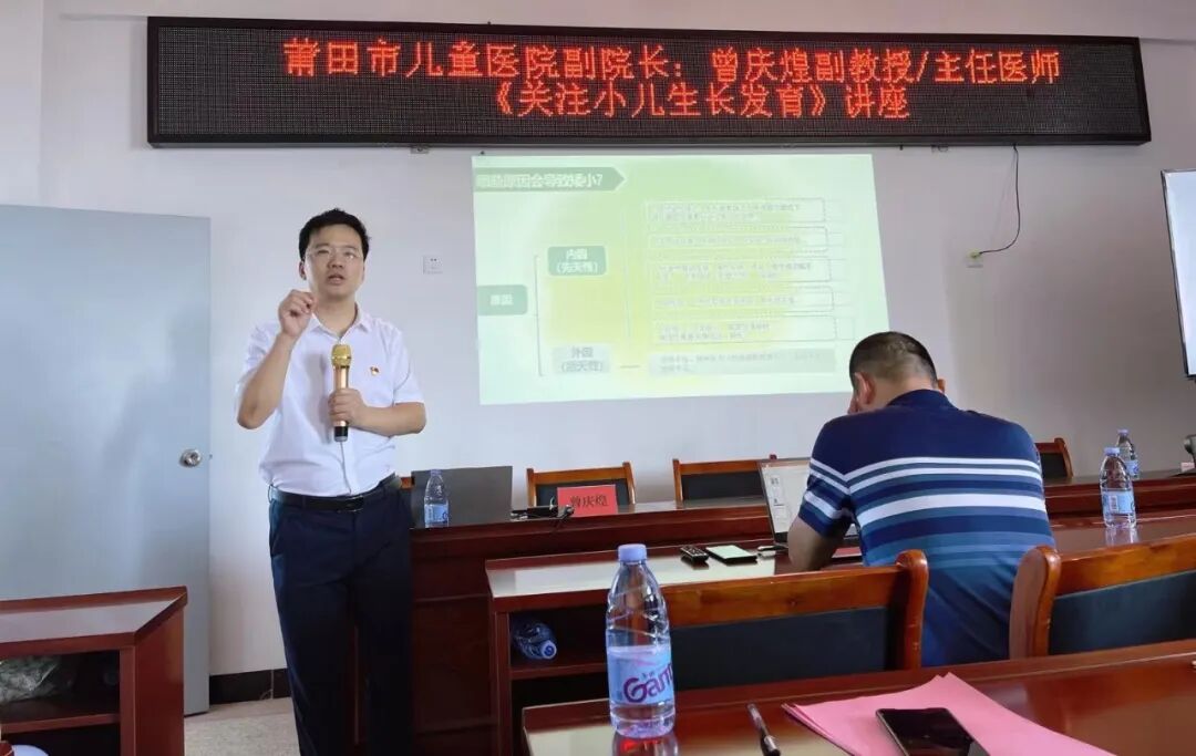 莆田学院附属医院儿科专家、莆田市儿童医院副院长曾庆煌副教授带来《关注儿童生长发育》讲座,通过真实案例分析,图文讲解,分析儿童身材矮小的病因和常见的治疗方法,提倡大家早发现、早诊断、早治疗,普及儿童生长发育知识,培养科学育儿理念。