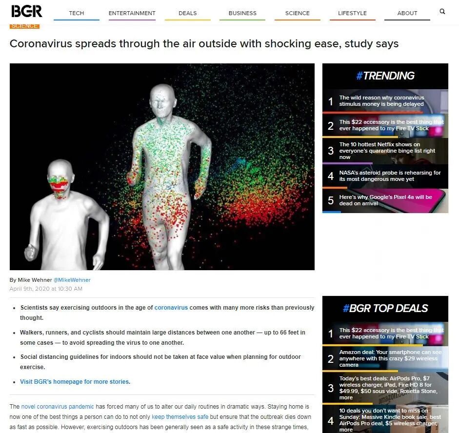 新冠病毒飞沫可飞行8米,新研究:跑步、骑行至少隔10米远