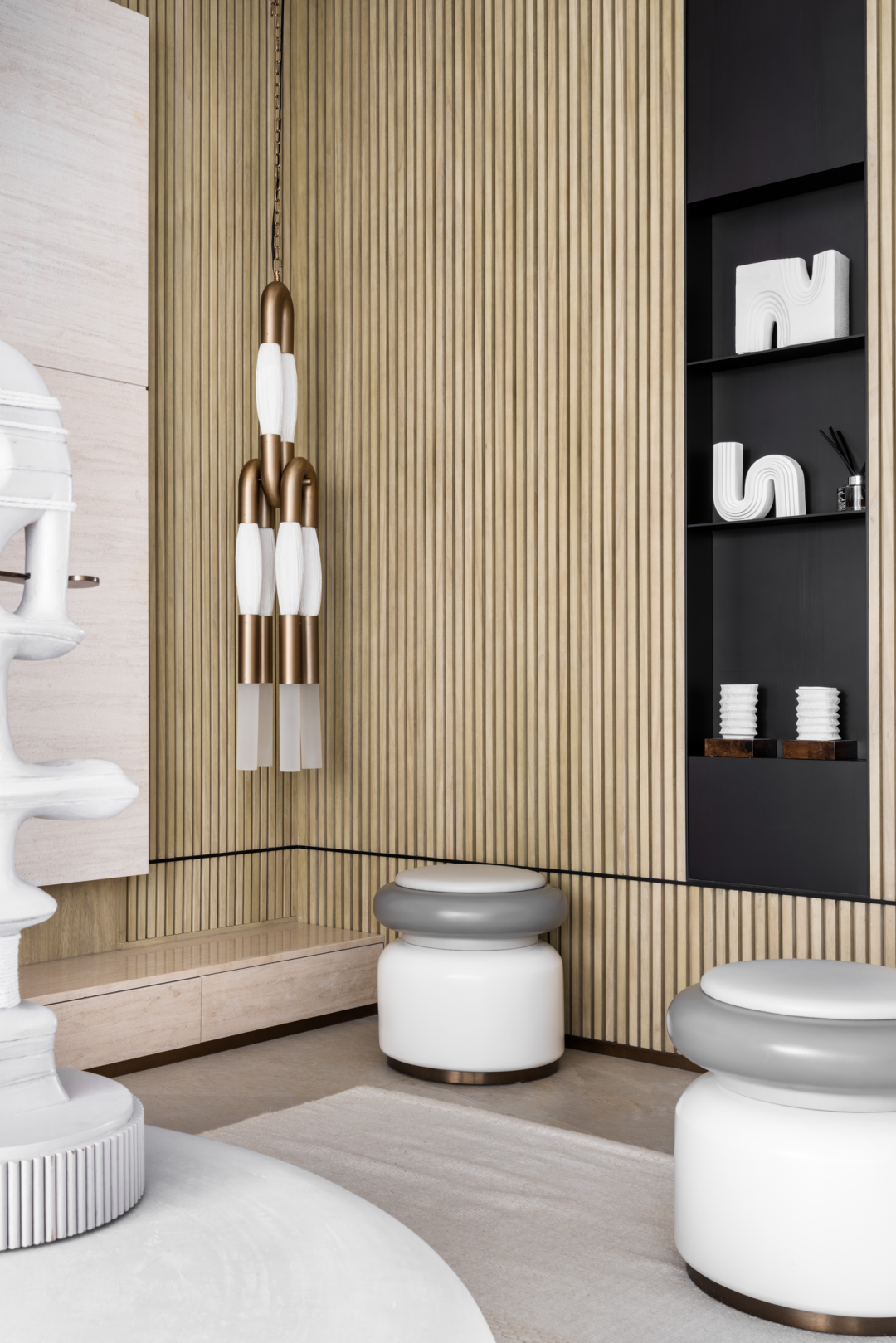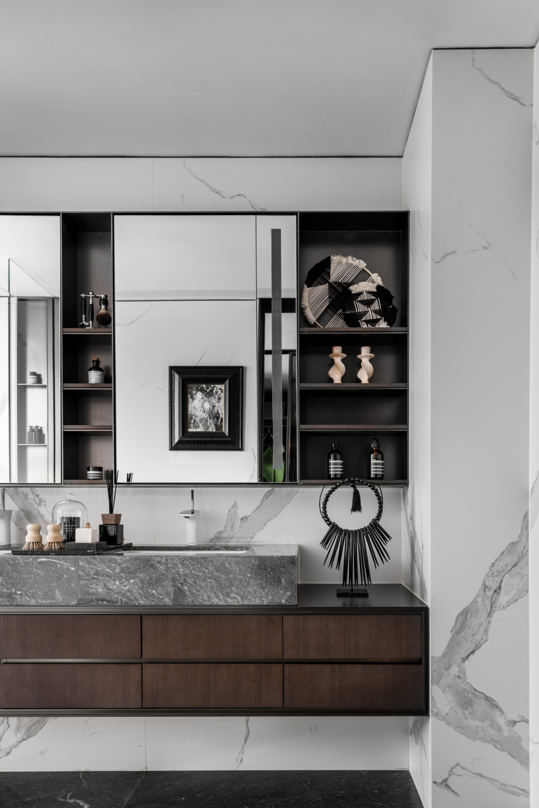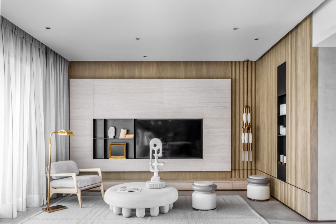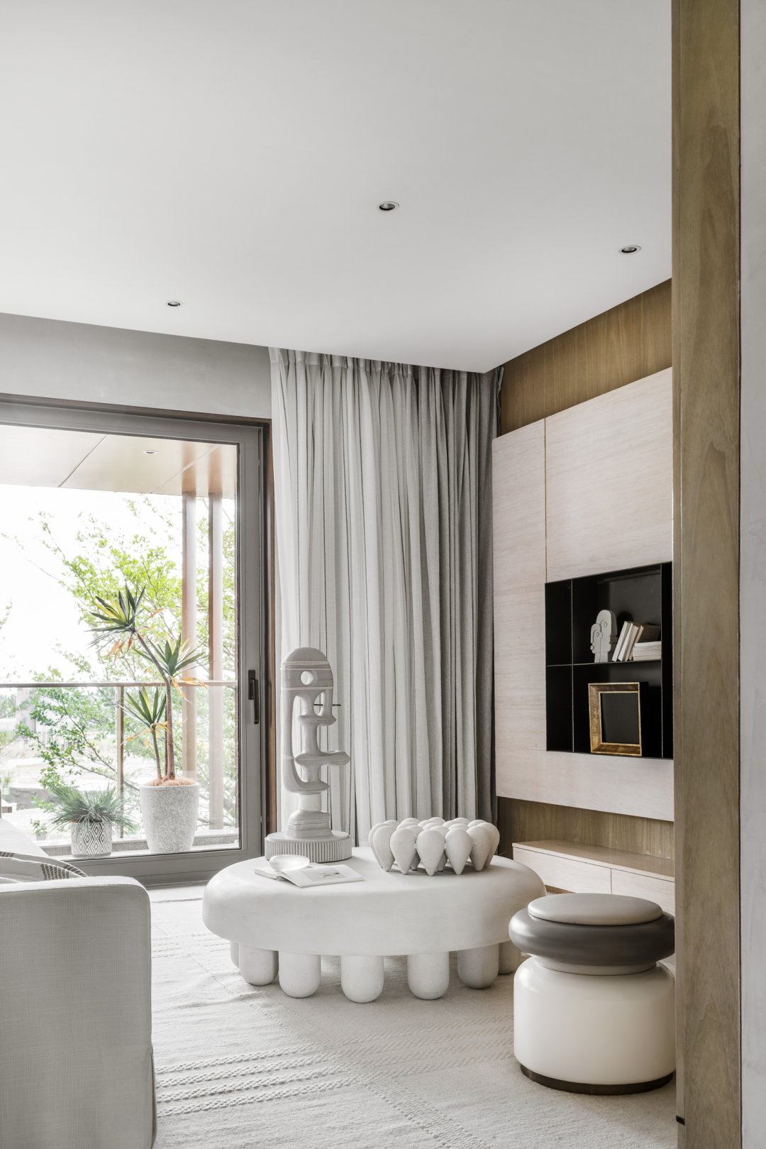 人类与自然实则在互相驯化,现代人崇尚返璞归真,更加渴望回归自然。本案从石这一自然图腾贯穿整体设计,以石为引串联了空间的叙事方式,材质的刚与外观的柔诠释了令人着迷的空间语系,静谧的叙述质朴博怀的自然品格。